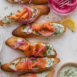 Smoked Salmon Tartines with Green Goddess Goat Cheese.