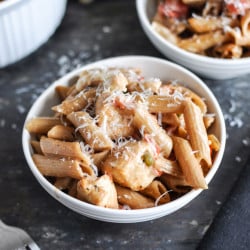 Super Easy Creamy Tomato and Chicken Baked Penne.