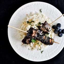Grilled Blueberry Chicken Skewers with Coconut Rice.