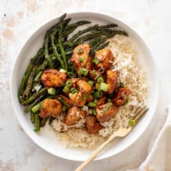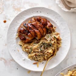 Smoky Hot Honey Chicken Thighs with Toasted Rosemary Orzo.