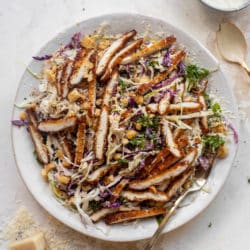 Crispy Pistachio Chicken with Zucchini Ribbon Salad.