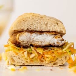 Crispy Fish Sandwiches with Chopped Banana Pepper Slaw.
