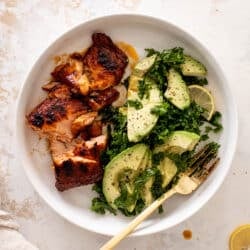 Hot Honey BBQ Chicken Thighs with Citrus Slaw Salad.