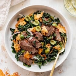 Chimichurri Kale Steak Salad with Manchego Crisp Croutons.