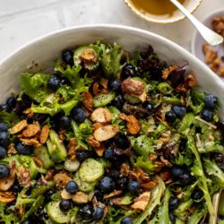 Grilled Chicken Blueberry Salad with Herb Sugared Marcona Almonds.