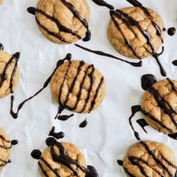 Fudge Striped Pumpkin Peanut Butter Cookies.