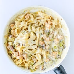 Creamy Butternut, Bacon and Leek Pappardelle.