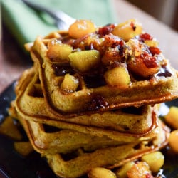 Pumpkin Spice Waffles with Butternut Bacon Syrup.