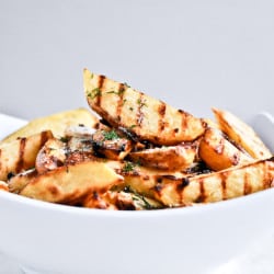 Garlic Butter Sweet Potato Fries with Creamy Feta Dip.