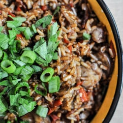 Pretzel Bread Quinoa Stuffing with Garlic Butter Mushrooms.