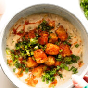 - You’re Done! Top each bowl of soup with a pile of seasoned tots, some cilantro and green onion, and a shot of hot sauce if you want. Absolute delight.