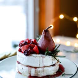 Caramelized Winter Fruit Stuffed Brie Cheese with a Pinot Poached Pear. {Video!}
