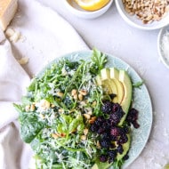 30 Minute Farfalle with Marinated Feta, Arugula and Toasted Pine Nuts.