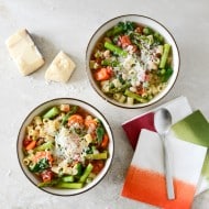 Roasted Spring Vegetable and Goat Cheese Fettuccine.