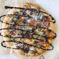 Springtime Portobello, Asparagus + Prosciutto Pizza with Balsamic Glaze.