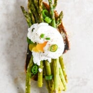 Roasted Sesame Asparagus Toasts with Poached Eggs.