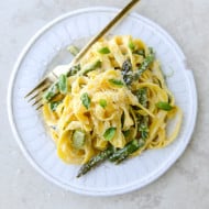 Fettuccine with Brown Butter Asparagus and Parmesan Fonduta.