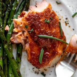 Smoky Sweet Cedar Plank Salmon with Sesame Asparagus.