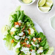 BBQ Chicken and Pineapple Lettuce Wraps with Cilantro Yogurt Sauce.