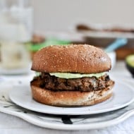 Easy Double Bean Burgers with Avocado Basil Cream.