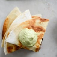 Cheesy Double Bean Quesadillas with Homemade Avocado Ranch.