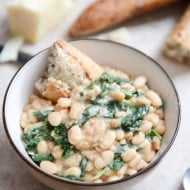 Creamy Parmesan White Bean Stew with Spicy Greens.