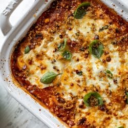 Zucchini Lasagna Bolognese with Spicy Basil Breadcrumbs.