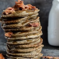 Mini Buckwheat Bacon Pancakes with Bourbon Syrup.
