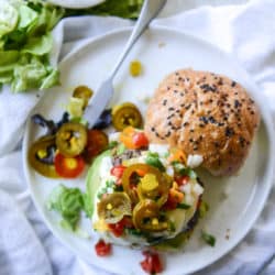 Cheesy Bruschetta Chicken Burgers.