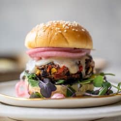 Roasted Corn and Black Bean Cheddar Melt Burgers.
