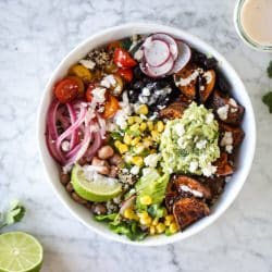 Caramel Chipotle Sweet Potato Burrito Bowls.