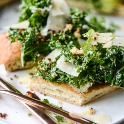 Kale Caesar Salad Pizza on Parmesan Crust.
