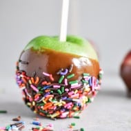 Chocolate Peanut Butter Fudge Stuffed Caramel Apples.