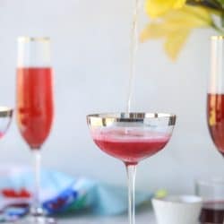 Pomegranate Cider Mimosas with a Salted Caramel Rim.