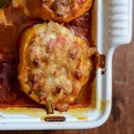 White Bean + Chicken Enchilada Stuffed Peppers.
