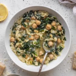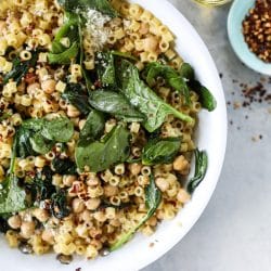 20 Minute Spicy Garlic Spinach Pasta with Chickpeas.