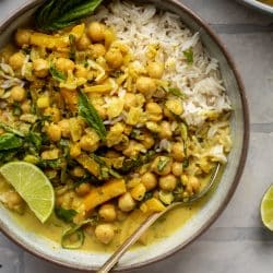 Easy Thai-Style Chickpea Curry with Coconut Rice.
