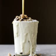 Peanut Butter Chocolate Chip Cookie Dough Blizzard with No Churn Vanilla Bean Ice Cream.