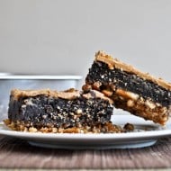 Triple Layer Chocolate Chip Cookie-Fudge Brownie-Peanut Butter Blondie Bars .