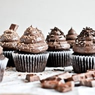 Chocolate Chip Oatmeal Cupcakes with Cinnamon Sugared Chip Frosting.