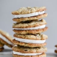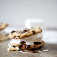 Chocolate Chip Cookie Peanut Butter S’mores (…with the easiest vanilla bean marshmallows).