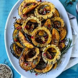 Pumpkin Seed Pesto Pasta with Caramelized Delicata Squash.