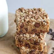Chewy Chocolate Chip Blondies with Oatmeal Cookie Streusel.