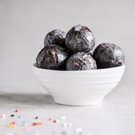 Glazed and Sprinkled Chocolate Cake Donut Holes.