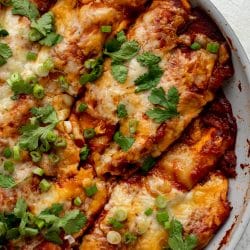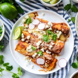 Cheesy Pork Enchiladas with 10 Minute Smoky Enchilada Sauce.