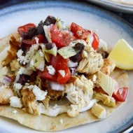 Marinated Greek Chicken Tostadas.