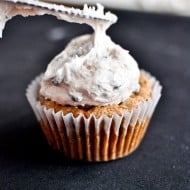 Brownie Banana Bread Cupcakes with Brown Sugar Frosting.
