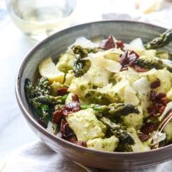 Homemade Ricotta Gnocchi with Asparagus Pesto.