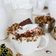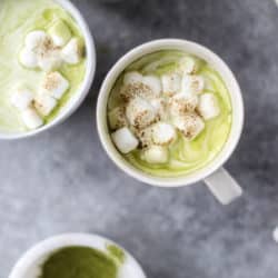 Matcha Honey Hot Chocolate with Toasted Marshmallows.