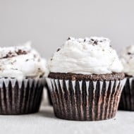 Kahlua and Cream Double Chocolate Chunk Cupcakes.